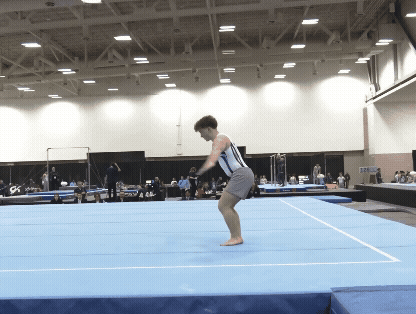 The gymnast below has a fun little hop turn after he rolls up that could be used before a regular cartwheel, or other element.